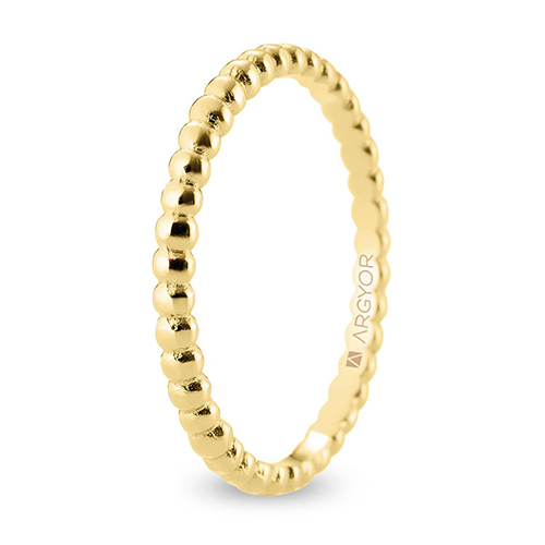 Alianza en oro amarillo de 18 quilates con diseño perlado, que hace de esta joya la alianza perfecta para las novias menos tradicionales